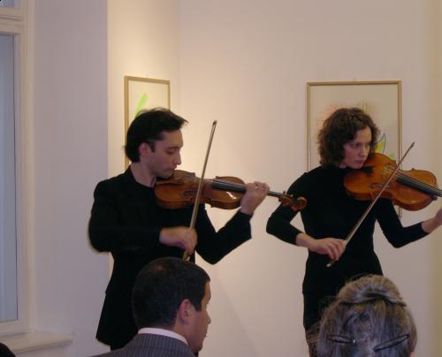 A tárlatmegnyitót követően a New York-i Forte Duo Terényi zenedarabjaiból adott elő néhány kellemes szemelvényt. A végén pedig mindenki egy-egy pohár borral koccintva köszönthette a művészt, leülhetett vele a Dante-i kertben beszélgetni, elmélkedni.