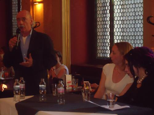 A Scolar Kiadó részéről Sugár András mutatta be a szép számú közönségnek a finn írónőt, akit a jelenlévők valószínűleg nagyon is jól ismertek, hiszen a nagy érdeklődést tavaly magyarul is megjelent Tisztogatás című regényének sikere váltotta ki. A műnek, amely eredetileg drámaként íródott, a közeljövőben két hazai bemutatója is lesz: a kaposvári Csiky Gergely Színházban Valló Péter rendezésében láthatják majd, a Budapesti Kamaraszínházban pedig Sopsits Árpád viszi színre.