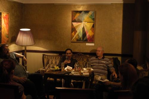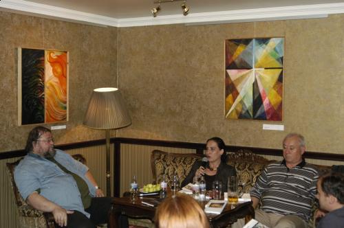 Hammerstein Judit történész és Vári Fábián László költő-író voltak az est vendégei, ahol a Kortárs Kiadó könyvújdonságairól beszélgetett a szerzőkkel Ambrus Lajos főszerkesztő. Míg odakint őszbe fordult a nyáreste, szél cincálta a fákat és szakadt az eső, addig a Hadik fülledt kávézójában egy kis orosz utazásra indultunk: jóval a szovjet idők elé, majd bele a közepébe, végül a hátunk mögött hagyva, áthajózva a jelenbe. E képet nem véletlenül hívta elő az est: Hammerstein Judit könyve Alekszandr Szokurov filmjének címére, Az orosz bárkára utal.
