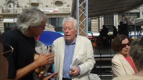 Antall István bevezetésképp megosztotta a hallgatósággal azt az anekdotát, hogy mire Ferdinandy György nevét megtanulták volna a franciák, Dél-Amerikába költözött, és elkezdett spanyolul írni. Az írót fia új kötetéről kérdezte, melyről néhány szót már az ünnepi beszédben is hallhattunk. Ferdinandy elmesélte, hogy Michel a dijoni orvosi egyetemet hagyta ott (unalmasnak találta), mielőtt nekivágott volna, hogy körbekerékpározza a Földközi-tengert. „Atyai kód”-e a vándorlás szeretete? – kérdezte Antall István, és Ferdinandy György egyértelmű igennel válaszolt. Sőt, oly mértékig „összemosódtak” a Michel úti élményeiből született kötet kapcsán, hogy tévedésből Ferdinandy György neve került szerzőként a könyvre, és mivel fia nincs Budapesten, ő is fogja helyette dedikálni.