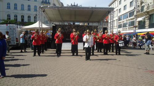 Az első igazi forró nyári nap várta az Ünnepi Könyvhét kezdetére érkezőket a budapesti Vörösmarty téren, ahol a hagyományos fúvószenekari nyitány után Ferdinandy György mondott ünnepélyes megnyitót.
