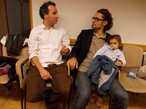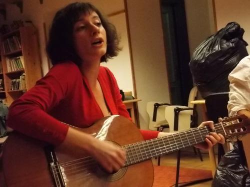 A tetőtéri, szépen helyreállított teremben a költő barátaival és a TEGYESZ három munkatársával beszélgettünk, majd ültünk le körben, meghallgatni Szeder-Szabó Kriszti gitárjátékát és Weiner Sennyey Tibor verseit. Mielőtt ők a valós és képletes húrokba csaptak volna, az intézmény vezetője röviden beavatott bennünket, hol is vagyunk. Ez az átmeneti otthon, sajnos, mindig túltelített, jóval több gyermek elhelyezését kell megoldani, mint amennyire kapacitásuk lenne. Budapesten e nyolcadik kerületi épületen kívül még két hasonló intézmény működik. A helyzetükre való tekintettel mindig szívesen fogadják a jobb állapotú holmikat – a gyerekeknek ez óriási segítség.