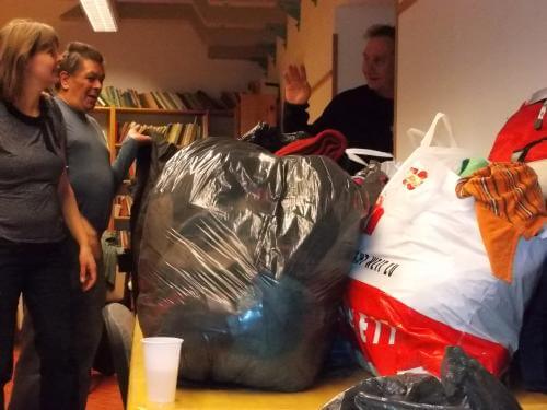 Az összegyűlt ruhanemű körül az intézmény munkatársai