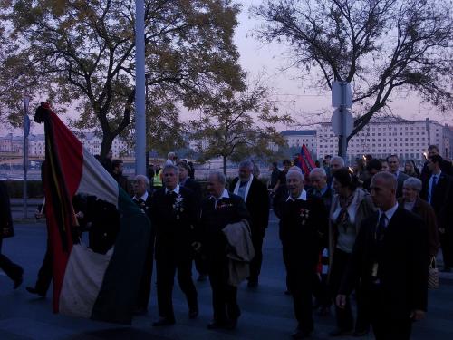 Az ünnepségsorozat 22-én délután kezdődött a Budapesti Műszaki és Gazdaságtudományi Egyetem aulájában, innen indult a Bem térig haladó fáklyás felvonulás. Mi sokakkal együtt a Bem téren vártuk a menetet, amely, bár jó fél órával a meghirdetett öt óra után, de a közelben megkonduló harangok szavára megérkezett, és elkezdődött a megemlékezés az ünnepi díszbe öltöztetett téren. A virágokkal körbeültetett Duna-parti zöld területet koszorúk halma tarkította, Bem József szobrát két oldalról piros és zöld színnel világították ki. A szobor mellett a Székesfehérvári Gimnázium kórusa állt, a Himnuszt velük közösen énekelték el a résztvevők.