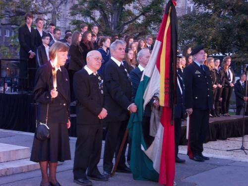 Miután a kórus előadta Berzsenyi A magyarokhoz című művének Kodály-féle kórusfeldolgozását, Kozma Imre, a Magyar Máltai Szeretetszolgálat elnöke állt a mikrofonhoz. A szerzetes Sinka István Üdv néked, ifjúság című versét idézte köszöntésképpen, és ahogy a téren körülnéztünk, megállapíthattuk, hogy bőven akad, akihez személyesen szólnak a sorok, hiszen rengeteg fiatal gyűlt össze. Kozma Imre felsorolta mindazokat, akiknek az emléke előtt a mai napon meghajtjuk a fejünket. Emlékezünk azokra, akik fegyverrel a kezükben haltak meg; akik a szovjet megszállás után is hűségesek maradtak az eszméhez; azokra a bírókra és ügyészekre, akik nem lettek árulók; azokra a hősökre, akik nem voltak hajlandók hamisan tanúskodni; az egyetemistákra, akiket eltávolítottak az oktatási intézményekből; az oktatókra, akik gyárudvarokat voltak kénytelenek söpörni vagy csak az íróasztalfiókjuknak írhattak; és azokra a papokra és közösségszervezőkre, akik megjárták a börtönt.