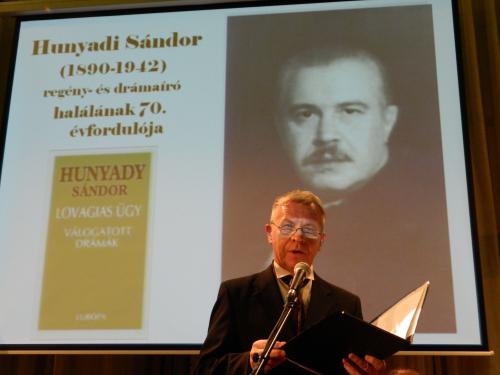 Ám mielőtt a részletek elhangzottak volna, a mikrofonhoz lépett Alexander Brody, az író Bródy Sándor unokája és Hunyady Sándor unokaöccse. „Bár Bródy Sándor a nagyapám, én mégis kedvenc nagybátyámról, Sándorkáról szeretnék megemlékezni” – kezdte visszaemlékezését, és elmondta, hogy az életben a legfontosabb dolgokat „Sándorkától” kapta. Például az első szivart. „Példaképem és hősöm ő, bár csak tizenegy éves voltam, amikor meghalt” – folytatta a leszármazott, aki maga is ír, és számos kötetben felelevenítette már nagybátyja, vagy annak édesanyja, az igézően szép Hunyady Margit színésznő történetét. Bár Alexander Brody határozottan állította, hogy nem örökölte felmenői tehetségét, rövid, ám annál ízesebb és szórakoztatóbb beszéde hagyott némi kétséget efelől.