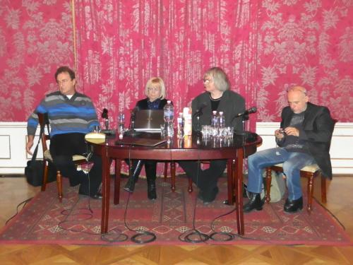 A Vörös teremben Turczi István, Deák Csillag, Temesi Ferenc, Kölüs Lajos (balról jobbra)