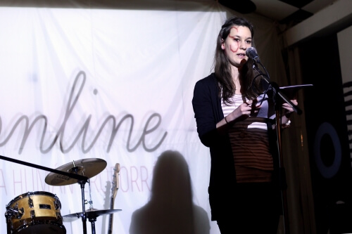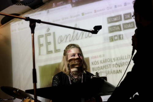 A főszerkesztő néhány szóval bemutatta a lapot a közönség azon kicsiny szeletének, akik korábban még nem ismerték. (Felteszem, a tudósító volt az egyetlen ilyen személy.) A FÉLonline papírfolyóiratként indult 2007-ben Székesfehérváron, a főszerkesztő szavaival egy „önjelölt művészkör produktumaként”. Ebből nőtt ki a felonline.hu, ahogy idővel az alkotók, szerkesztők Budapestre jöttek tanulni. Főként bölcsészek a portál szerzői, de akad köztük corvinusos diák is. A felonline.hu 2009-től elérhető az interneten, 2011-től működik portálként, de 2012-ben feltörték az oldalt, így semmivé lett minden addigi munkájuk. Ám a főszerkesztő optimista szemszögből is interpretálta az adatvesztést: ez lehetőséget adott arra, hogy teljes mértékben megújítsák az oldalt. Hlatki Dorottyával folytatódott a fátyol fellebbentése, ő készítette az oldal designját. Dorottya kifejtette, hogy egyedi és a nagyközönséget megszólító arculatot terveztek létrehozni.