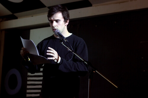 Ezt követően került sor az összejövetel legütősebb részére: meghallgathattuk a Kiültetés (http://kiultetes.felonline.hu/) antológia szerzőinek verseit, illetve a hozzájuk csatlakozó Körtesi Márton műveit. Elsőként Katona Ágota, a felonline.hu szerkesztője meglehetősen komor művei hangzottak el, melyeket Balázs Zoltán alanyi versei követtek. Mihály Rékától egészen különleges költői képeket hallhattunk – mint például a beszédes „öblítőszagú napok”. B. Horváth László falusi életképeket felvillantó versei után a vagabund Körtesi Márton alkalmi költeményei és kocsmaversei kerültek sorra – méltán nagy sikert aratva. Minden felolvasó rutinosan mozgott a színpadon, nem volt idegen tőlük ez a közeg, látszott, hogy nem először állnak közönség elé.