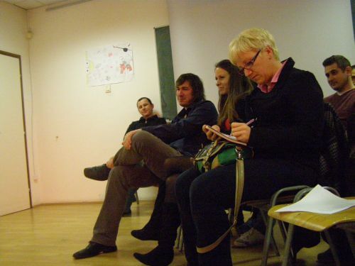 Mi mással kezdhette volna Noszlopi Botond az estet, mint a nők köszöntésével? Tréfás meglátása szerint a vártnál családiasabb jellegű összejövetel pozitívum: inkább egy értelmes, mint száz üres fej a közönség soraiban. Az est azonban annál izgalmasabban alakult. A közönséget a vége felé ugyanis egy kis játékba vonták be a beszélgetők, így egyfajta „interaktív” író-olvasó találkozóvá formálódott a műsor. Murányi Sándor pedig jellegzetes temperamentumával, humorával és ötletességével egyénivé varázsolta az estet. Méltó partnerként mutatta be Varga Melindát, aki költőként ígéretes tehetség, de az Irodalmi Jelen olvasói jól ismerhetik tudósításait is, melyeket Kolozsvárról küld rendszeresen a lapnak. Neki köszönhetően tájékozódhatunk rendszeresen Erdély fővárosának magyar irodalmi és kulturális életéről. Murányi Sándor Olivér külön köszönetet mondott az Irodalmi Jelen munkatársainak, Varga Melinda kollégáinak, akik részt vettek az esten, valamint Nagy Andreának, a helyszínként szolgáló Márton Áron Kollégium könyvtára vezetőjének.