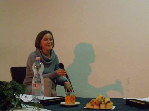 A városkép, mint verseiben gyakran visszatérő szimbólum vetette fel a záró kérdést: hová születne újra, ha tehetné? A költőnőnek Gyergyó a szülővárosa, de mégis Kolozsvárott érzi magát otthon, az a „választott városa” – mesélte az est vége felé. Budapestet azért kedveli, mert nagyváros és nagy a nyüzsgés. De ha újra születne, ugyanezt az utat járná be és továbbra is Kolozsvár lenne a szíve csücske. Most épp egy termékeny periódusában van, vallotta meg, lehet, hogy a közeljövőben elkészül a következő verseskötete. Sejtelmes mosollyal hozzáfűzte, hogy egy próza is készülőben van, de ez még hétpecsétes titok.