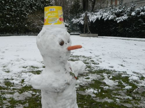 De ma még ő is ünnepelt: ha jobban megnézzük, valamennyire kilátszik (hó)szíve fölé tűzött kokárdája.