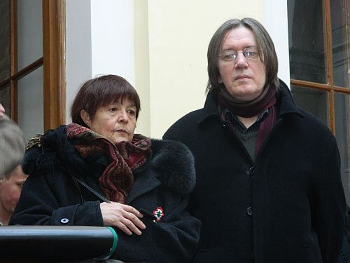 Vathy Zsuzsa a Magyar Írószövetség részéről minden évben részt vesz a koszorúzáson, tavaly unokáját is elhozta. Idén nem csak a tisztelatadás pillanatában örökítettük meg Zsille Gábor mellett...