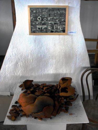 Hogy megragasztja, azon morfondírozik. Valahogy. Legalább a nagyobb darabokat. Valami kence csak van… „Készülnöm kell a megnyitóra” - elsomfordálok a balfenéken. Szégyellem, hogy sajnálom a kudarcért. Pedig. Pedig. A kudarc bennem hízik, a filosz fejemben, s hasogatja, hogy ki se látok tőle. Ha töredék, akkor már kudarc. Ha rom, nem lehet műtárgy. Hacsak nem koncept: utólag gyártott storyboard a determinált dekonstrukcióhoz! Ez még nekem is tetszene, a kritikusnak, cümmögni se lenne indíttatásom, s ókumlálni. Bajszot ragasztani koromra: micsoda játszma! Mekkora építmény! Minő konstrukció!