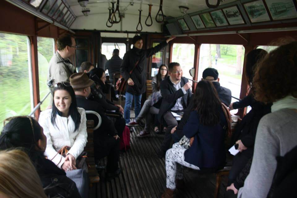 A Benedek Elek Könyvtár volt a versséta utolsó állomása. Keczán Marianntól megtudtuk, hogy a szemközti szállodák adtak helyet a Csokonai-kör gyűléseinek. A könyvtárral szemben lévő villamosmegállóba megérkezett a nosztalgia-villamos, elindult a versjárat. Térey János felolvasott, Keczán Mariann újabb érdekességekkel bombázta az utasokat – már amennyire a csörömpölés engedte.