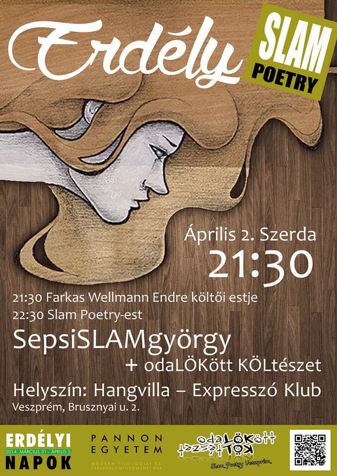 Szintén április 2-án este fél 11-kor került sor a veszprémi odaLÖKött KÖLtészet slam poetry estjére, melyre a városi fiatalok ez alkalomból a műfaj legkiválóbb erdélyi művelőivel álltak össze: az estén Győrfi Kata, Bartha Loránd és André Ferenc diktálták a hallgatóságnak az ütemet, megmutatva a nyelv élő ezerarcúságát. A szövegekből kiderült, hogy e kortárs műfaj követői számára mennyire fontos, hogy közéleti témákon keresztül mutassanak példát másoknak, hiszen úgy vélik, a közösségért – melyben élnek – ők maguk is felelősséggel tartoznak. Az erdélyi slammerek úgy érzik, hogy a világ történéseire, az ország aktuális problémáira és a politikára is egyaránt reflektálni kell, különös hangsúlyt fektetve a határon túli problémák megjelenítésére.