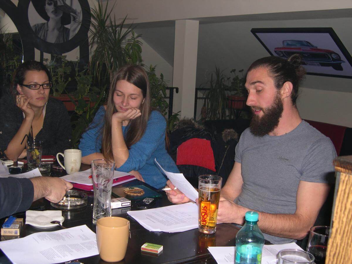 Az esten Turcsány Bíbor is részt vett, de csak mint hallgató, verset sajnos nem hozott magával. Ahogy a másik új műhelytag, Gere Nóra sem, akiről kiderült, gyerekkora óta ír. Ő egyelőre csak belekóstolt, hogy mi folyik itt, de legközelebb majd megismerhetjük a műveit is. Hasznos tanácsai, észrevételei viszont bölcsészi szakértelemről árulkodnak.