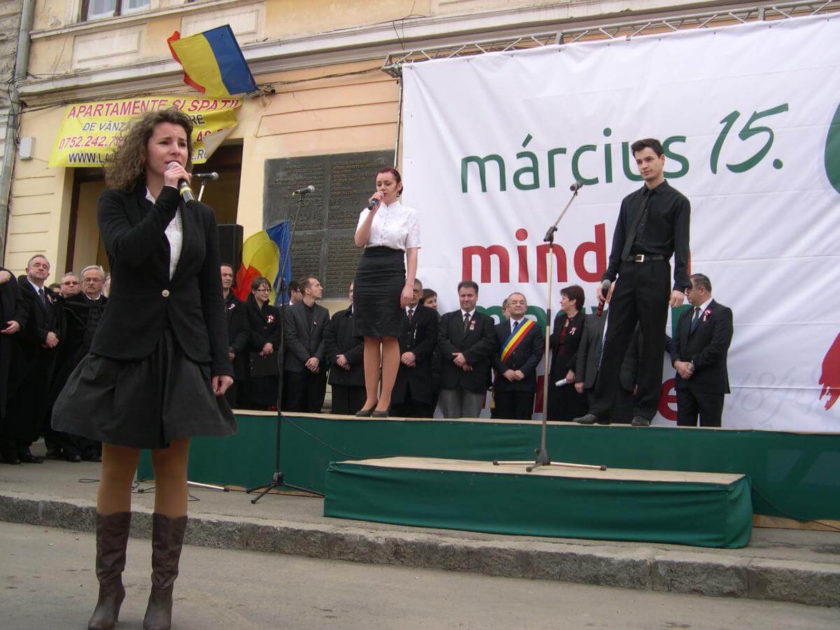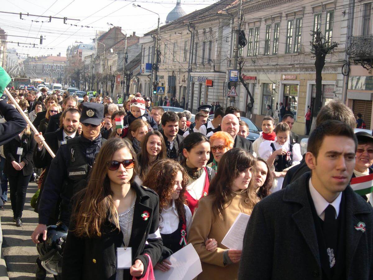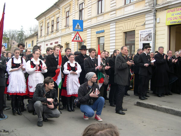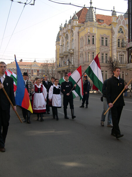 Az eddigi évek hagyományaihoz híven a Kolozs megyei RMDSZ idén is impozáns megemlékezést szervezett a március 15-én. Az ünnepi felvonulás délelőtt a Protestáns Teológiai Intézet elől indult a Szent Mihály-templomhoz, ahol ökumenikus istentisztelet tartottak, majd a résztvevők az Egyetem utcán át vonultak az egykori Biasini Szállóhoz. A Biasini előtt a ’48-as hősök emlékére szervezett ünnepi műsort a városi, megyei közméltóságok felszólalásai és szavalatok töltötték ki, majd koszorúzással zárult. Az esti fáklyás megemlékezéssel egybekötött rendezvényt, amelyre a Mátyás király szülőháza előtt került volna sor, a rossz idő miatt sajnos csak részben sikerült megtartani. Fényképes összállításunkban a kolozsvári ünnepi pillanatokból kaphatnak ízelítőt.