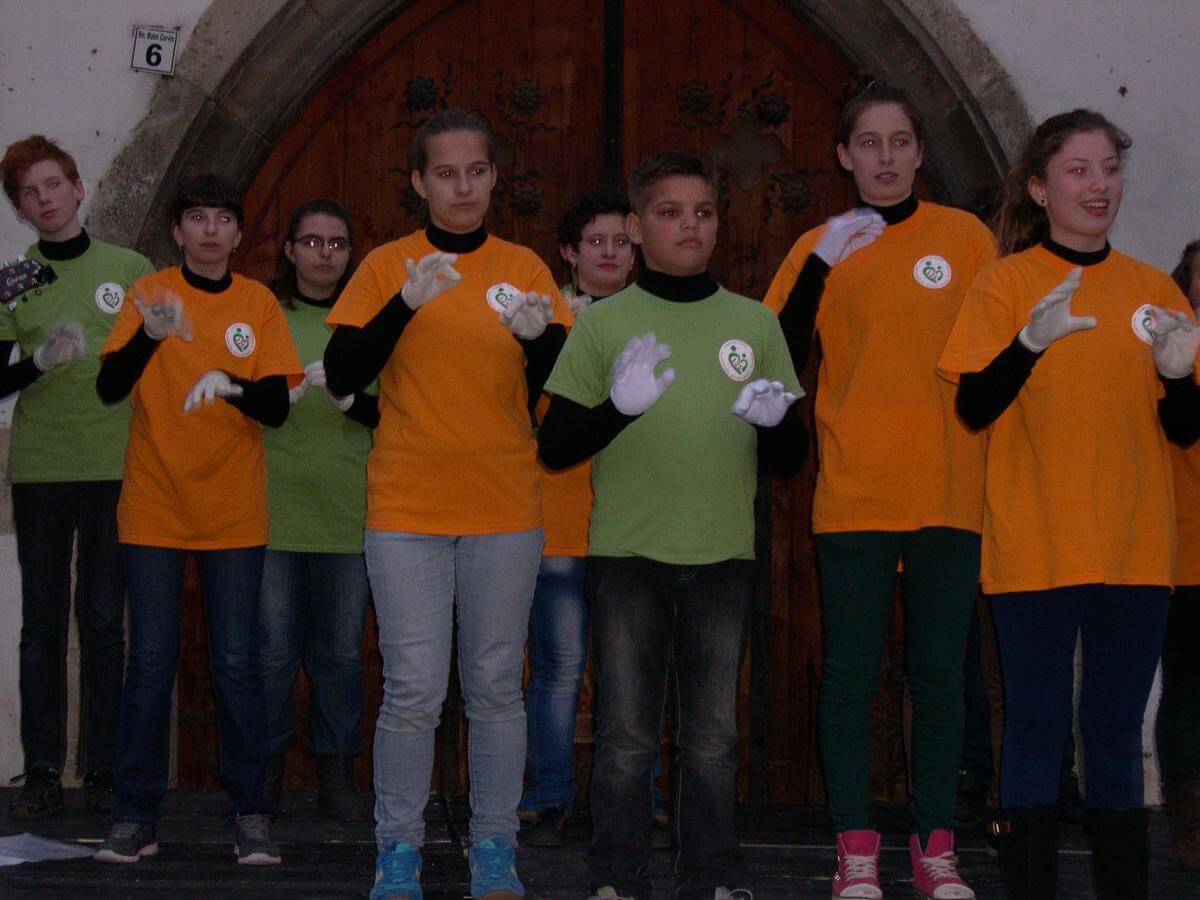 A hallássérült fiatalok jelnyelven énekelték el a Nemezeti dalt Mátyás király szülőháza előtt az esti rendezvény keretén belül