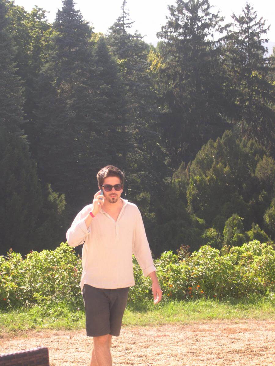 Fehér Renátó a délutáni verőfényben, azért ez jóval derűsebb arca a költőnek, mint amikor a kultúrpolitikáról szóló beszélgetést moderálta