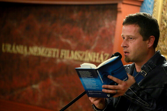 Nem maradt el e szöveg mögött Farkas Wellmann Endre versezete sem, melynek inkább le sem írjuk a címét, elég a kezdőszava, az Ária, melyet egy kertelés nélkül megnevezett női testtájhoz címzett a költő. De hogy ne a vaskos szólamok zárják az estet, Orbán János Dénes búcsúzóul két költeményt olvasott fel a regényből a főhős, André versei közül.