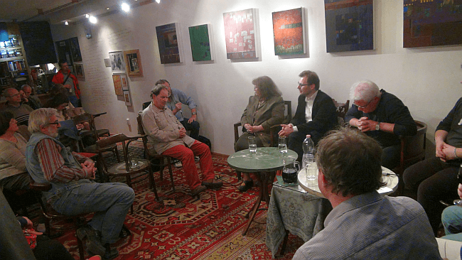 Rövid szünet után felolvasások következtek, mivel az eredetileg tervezett „ismeretlen szerző bírálan-dokk” művének közös elemzésére már nem jutott idő. Először a közönség soraiból jelentkeztek ismert szerzők: Bak Rita az estről távol maradó Csák Gyöngyi verseit olvasta fel, aztán a sajátjaiból kettőt. Utána Bátai Tibor, Debreczeni György, Nyírfalvi Károly, Fűri Mária és mások következtek, tartva magukat a megbeszélt két-két ópusz terjedelemhez, egyedül Payer Imrének sikerült egy összekötőszövegnek álcázott betét becsempészésével három verset is elszavalnia, igaz, ő volt a leghangosabb, és profi előadását hatalmas taps kísérte.