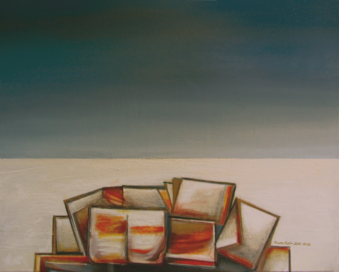 Elfolyó homok csöndje. 2014, olaj, vászon, 100 x 100 cm