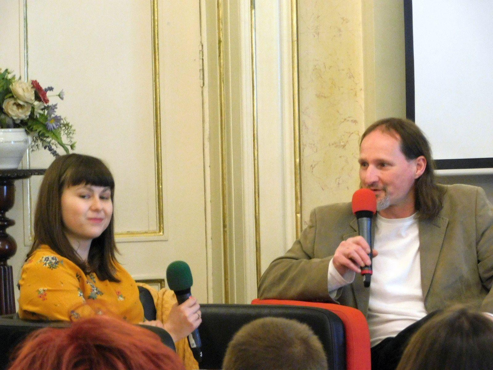 Zsille Gábor ezután Kürti Lászlót kérdezte, aki amellett, hogy költő, tanárember is, mégpedig Mátészalkán. Mint megtudtuk, a városban igen élénk irodalmi élet folyik, épp neki köszönhetően, rendszeresen megtartják ugyanis a Költők egymás között című esteket, ahol a diákok találkozhatnak személyesen a lírikusokkal. Kürti László egyébként igen sokoldalú: testnevelő és filozófia, valamint etika szakos. Zsille Gábor felhívta a figyelmet az egyre színvonalasabb Vörös Postakocsi című folyóiratra is, amelyet Kürti László és Kulin Borbála szerkesztenek (Mátészalkáról és Debrecenből). Országos lap, online és print változatban is megjelenik. Gábor megjegyezte, hogy Kürti nagy gondot fordít a virtuális jelenlétre, nagyon otthonosan mozog a digitális világban, szerzői honlapja is folyamatosan frissül. Mint a költő elmondta, számára ez létkérdés, hiszen Budapesttől háromszáz kilométerre csak így lehet jelen lenni az irodalmi életben. Az ő iskolájuk diákjai is eljöttek a mai ünnepi alkalomra a „Szaval a suli” című program résztvevőiként, pedig hajnali fél négykor kellett elindulniuk, hogy 9-re a PIM-be érjenek. Az első beszélgetős blokk zárása nem is lehetett volna szebb: Kürti László elmondta, nagyon szereti az élővilágot, versei is mind természet közeli élményből fakadnak. Így több más verse között a megindító Parasztgalamb is elhangzott.