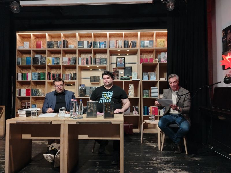 A pódiumon Mohácsi Balázs költő-szerkesztő, a könyv összeállítója beszélgetett Szegő Jánossal, és Bertók verseit Pataki Ferenc színész szólaltatta meg. A beszélgetést azzal kezdték, hogy a könyv anyagának összeállítása nagy munka volt, mely során Mohácsi az eddig megjelent kötetek mellett hagyatéki anyagokból, füzetekből és számítógépes mappákból is dolgozott. Például talált egy „Korai versek” és egy „Elfuserált versek” című mappát is. Kiderült, hogy az „elfuserált versek” nem is voltak olyan elfuseráltak, így Mohácsi azokat is betette a kötetbe, mely így „teljes portét ad”. Bertók egyébként „kényszeresen megtartott mindent”, így történhetett, hogy a PIM összesen 30 dobozban őrzi írói hagyatékát. Bertók „az utókornak dolgozott”.