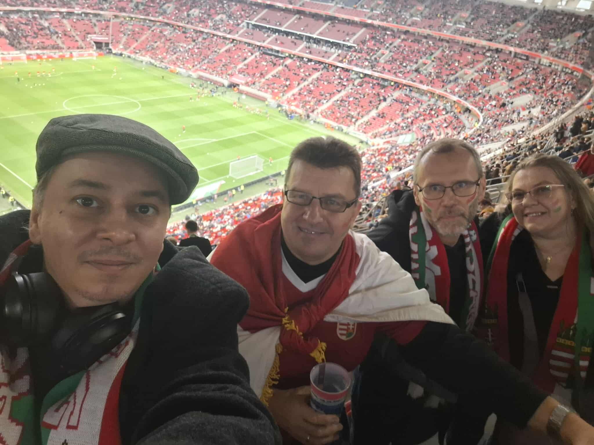 A magyar-örmény vb-selejtezőn 2025 októberében a Puskás Arénában: Csornyij Dávid, Luzsicza István, Bene Zoltán és Lőrincz P. Gabriella