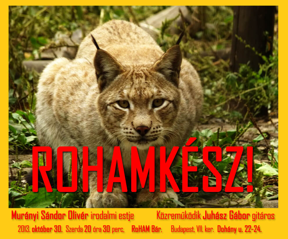 Van-e élet Zordok, a székely szamuráj, avagy a tavalyi év legvitatottabb magyar regénye után? Elszakad-e az új kézirat az erotikától? Lovagoljon, szabad medvéket lessen vagy nagyvárosi kávéházakban facebookozzon a huszonegyedik századi író? Ilyen és ehhez hasonló kérdésekre válaszol Murányi Sándor Olivér október 30-án, szerdán 20 óra 30 perctől a budapesti RoHAM Bárban (Vll. ker. Dohány u. 22–24). A szerző 1974-ben született Székelyudvarhelyen. Az író–harcművész–népi táncos 1987-ben a Nicolae Ceauşescu főfőelvtárs tiszteletére rendezett Megéneklünk Románia Országos Fesztiválon legkisebbségiként első díjat nyert a kalotaszegi legényessel, megelőzve a többségi táncosokat. 1986-ban kezdett el karatézni, 2006-ban lett fekete öv harmadik danos karatemester. Előtte azonban 1998-ban országos bajnok lett. Tizennyolc évesen két hétig volt ferences szerzetes jelölt – állítása szerint ennyit bírta nő nélkül. Eddig inkább Erdélyben ismerték, az utóbbi időben magyarországi publikációi révén felhívta magára a figyelmet. Merész hangvételű, az obszcenitásig menő, humorral átszőtt leírásokban bővelkedő, de a természethimnusz szentségéig emelkedő prózája egyként a magáénak mondhatja a kortársi kalandregényi, nevelődési regényi sajátosságokat, melyek a megnevezetlenül maradt erdélyi áthallásokkal, átszövődésekkel megkülönböztetett helyet biztosíthatnak számára a kortárs irodalomban. Az esten fellép Juhász Gábor Aegon-, Gramofon- és Artisjus-díjas jazz gitáros. Mindenkit szeretettel várnak.