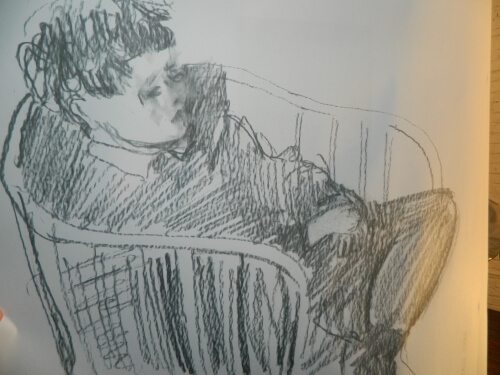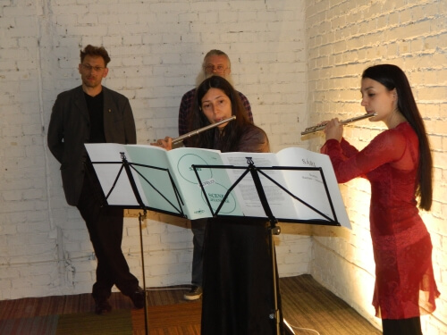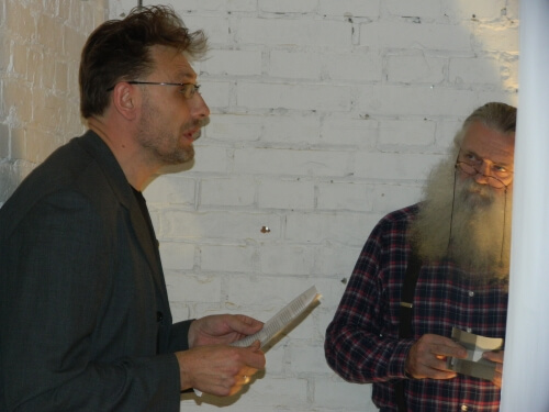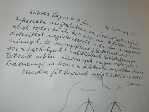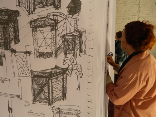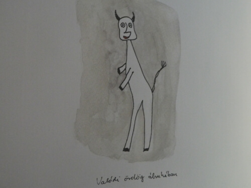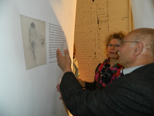 A jó író képíró is: a toll és a papír találkozásából a betűkön túl mindig előgomolyog valami más is. Egy rajzocska olykor többet elmond száz sornál. A kiállításon a sok-sok rajz együtt, a közös óriáskönyvben úgy szólaltatja meg a magyar irodalom klasszikusait és kortársait, mintha egy szimfonikus zenekar csodálatos kakofóniába olvadó összjátéka csendülne fel. Talán nem is véletlenül olvassa fel Bartis Attila a megnyitón Az orvosok zenekara című elbeszélését, habár azt ő sem tudta előre, hogy Rákóczi Anna és Petrovics Anna fuvolajátéka után következik majd, akik a jelen lévő Sári József zeneszerő szerzeményeiből adtak elő.
