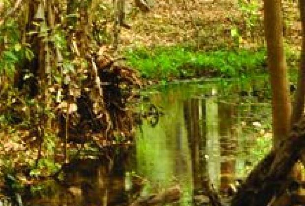 Ellátogattunk egy helyre, amit a törzsek szentként tisztelnek, mivel a tökéletesen száraz földből a fák gyökerei közül víz tör a felszínre, aztán csinos patakká duzzadva gyönyörű vízeséssé alakul. Se látványnak, se túrának nem rossz. A forrás közelében áll egy banánfa, ami állítólag csak magot terem. A legenda szerint egy mag felér 30 mahua likőrrel (helyi gyümölcsből főzőtt pálinka), nagyobb mennyiségben pedig halálos. A törzsek állítólag előszeretettel ki is használták ezt a tulajdonságát.