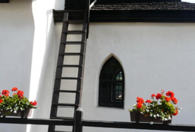 Nemcsak törölköző járt a fürdőszobához, de kis üveges tusfürdő is, így aztán már egészen kedvezőnek látszott az ár, ráadásul a kulcsos néni azt mondta, hogy fizessünk reggel a főnöknél, mert ő lehet, hogy enged még belőle. Kánaán. Be is vásároltuk a meleg szendvicshez valókat, aztán bementünk még a faluba, hogy megnézzük a gótikus templomot, amit a Térképrajzoló Ember utazása óta szépen felújítottak.