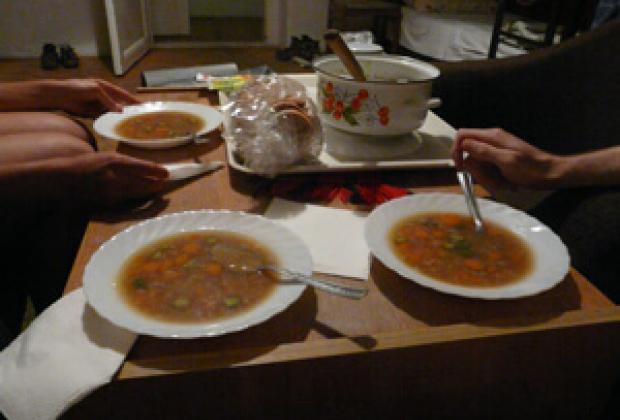 Később a rövidet is megtaláltuk hozzá a hűtőben, de azt nem illik meginni, ha nem kínáltak meg vele, úgyhogy maradt a zacskós leves csemege uborkával. -